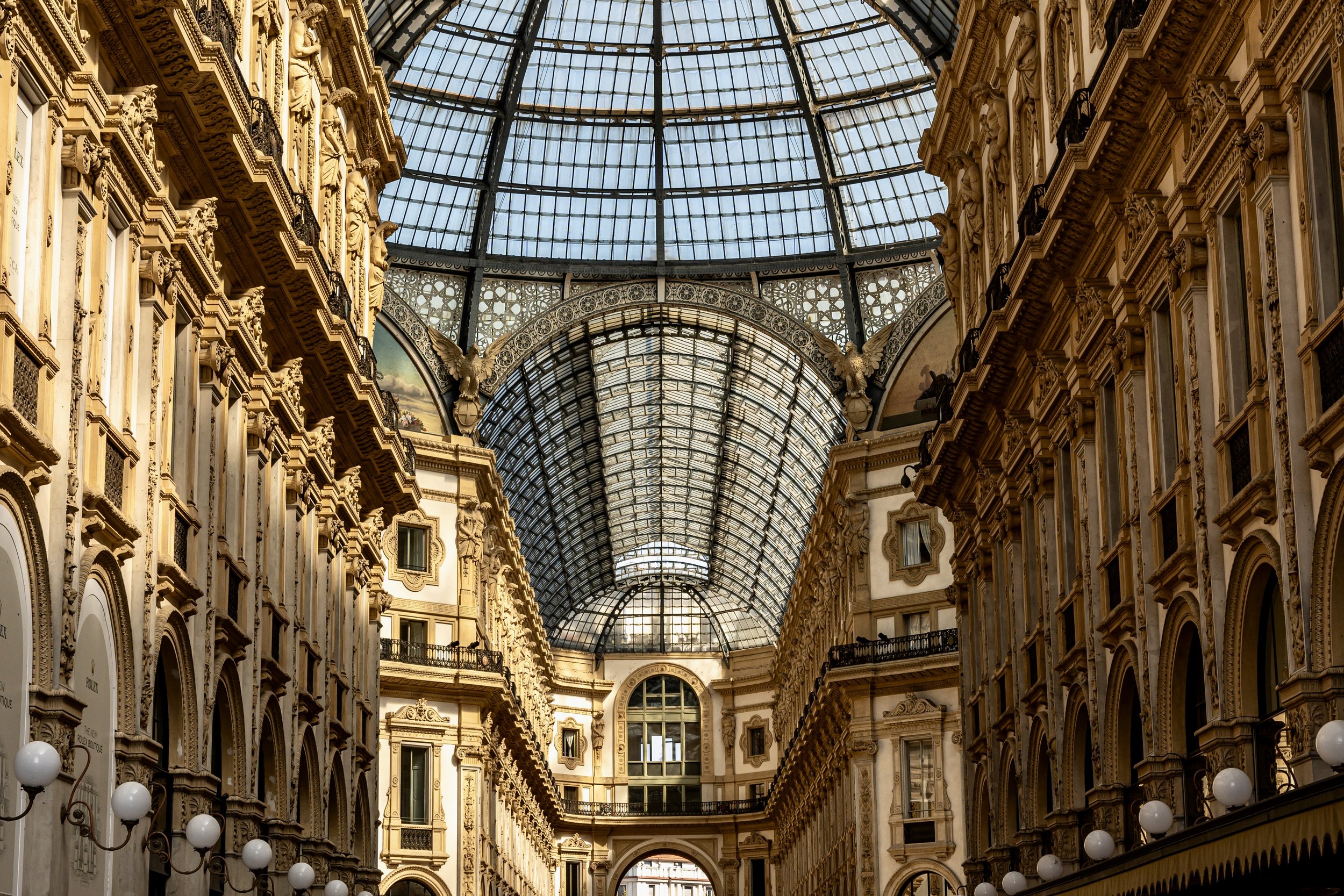 From here, the oldest mall in Italy, the Galleria Vittorio Emanuele II awaits. Sat beside the Cathedral, chances are if you’ve researched Milan in the past, you would have seen photos of this location. Inside you will find luxury stores and restaurants full of Italian charm, but once again it is the architecture which truly takes centre stage.